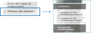 La saisie des consignes est accessible à partir du menu “diffusion des résultats”.