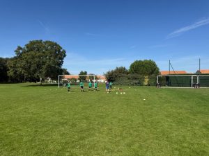 Un entraînement spécifique pour les gardiens est aussi prévu chaque semaine. Mais la pratique sportive ne se limite pas au terrain : elle s’accompagne de séances théoriques portant sur la tactique, la nutrition, la connaissance du corps, l’arbitrage ou encore la sensibilisation au handisport.