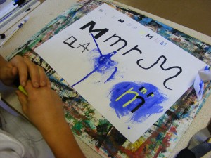 – Prendre différents outils scripteurs (feutres, crayons, fusain…) => essais => travail sur la taille, l’épaisseur, la typologie…
