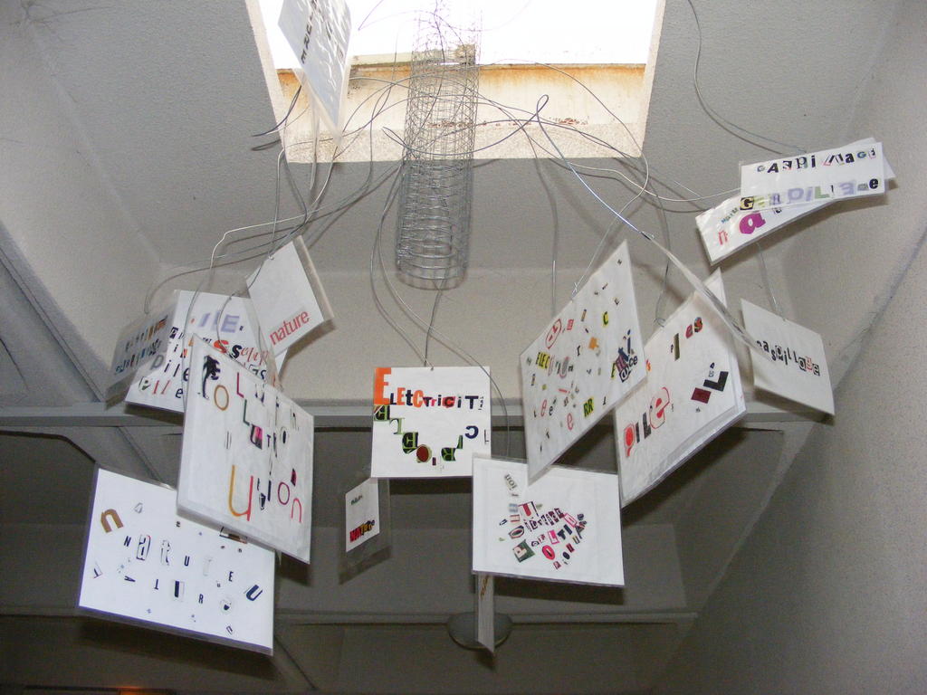 Consignes : « Vous devez écrire un des mots choisis parmi la liste sur une feuille A4. Les lettres que vous utiliserez seront tirées des magazines, des journaux.
