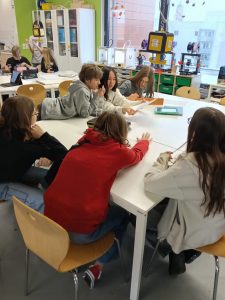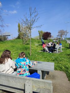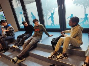 Avant de partir avec nos partenaires dans un musée, nos Loulous brisent la glace avec d’autres élèves de l’école et papotent en anglais. Grande amélioration en 3 jours.