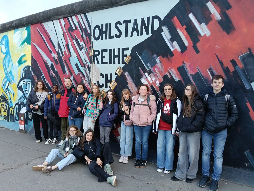 14h20 : nous quittons nos partenaires berlinois pour partir à la découverte du mur de Berlin avec le mémorial puis l’East side gallery. Le poids de l’histoire, des horreurs humaines est compensé par la dimension artistique que ce lieu représente maintenant. Les élèves mesurent la volonté du peuple allemand de ne jamais oublier tout en transformant un symbole de séparation et repli sur soi en un message de liberté et de partage.