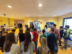 Les élèves partent pour découvrir une heure de cours avec leurs correspondants. Nous verrons bien ce qu’ils ont ressenti, eux qui sont habitués à avoir cours à 18 à 29 élèves chez nous.