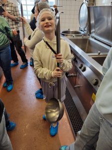 13h : visite de la cuisine centrale. Nous sommes de toute beauté. De vrais bonbons pour les yeux.