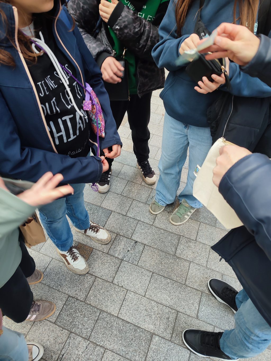 C’est une journée où la fatigue l’emporte sur la capacité à se rappeler des choses. Après avoir perdu sa gourde à l’école ce matin, Céleste vient de nous faire tomber son téléphone en pleine ville sans s’en rendre compte…. Heureusement que notre groupe est soudé et observateur.