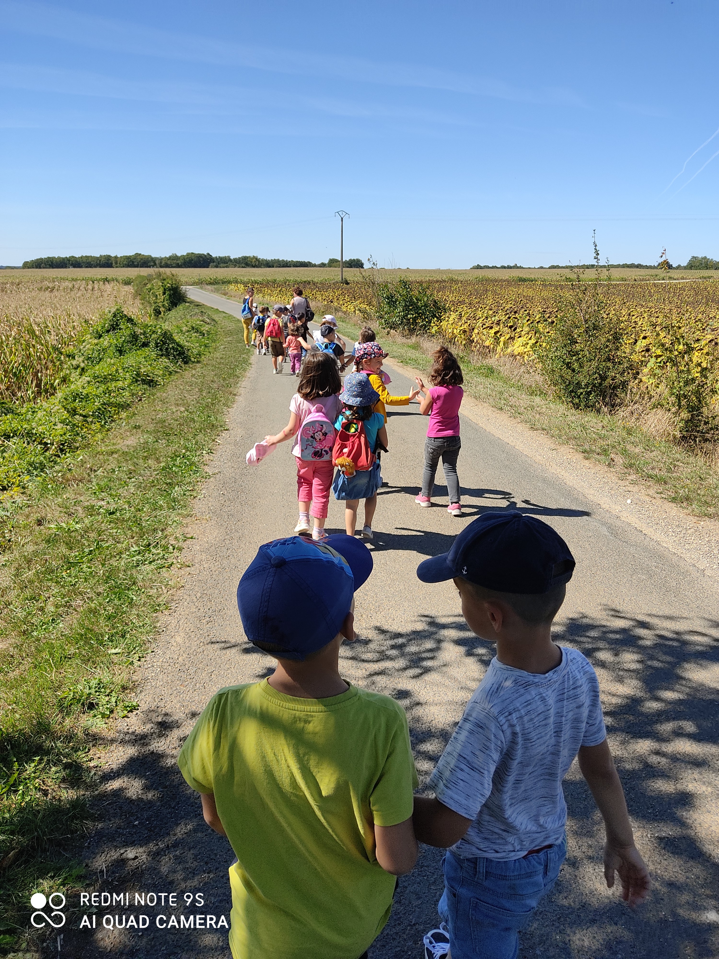Mardi 8 septembre, les Grands-CP accompagnés des Moyens sont allés se promener dans les vignes proches de l’école.