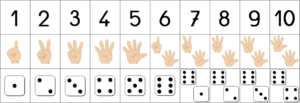 - Les TPS peuvent répéter le nom des lettres du jour : J-E-U-D-I et répètent la suite des nombres jusqu’à 8 en pointant au fur et à mesure sur la frise des nombres (Rôle des parents : montrer les lettres et les nombres en donnant le nom, l’enfant répète au fur et à mesure)