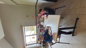 Nous voilà arrivés au Loup-Garou ! Après que chacun ait récupéré sa valise, les enfants se sont installés dans les chambres, puis ont fait un grand jeu pour découvrir les différents lieux du Loup Garou.
