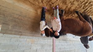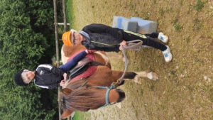 Et enfin la 1ère séance de poney tant attendue avec Sylvie l’animatrice ! Quel bon moment !