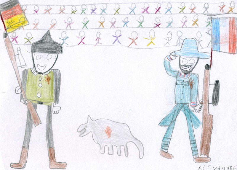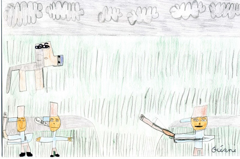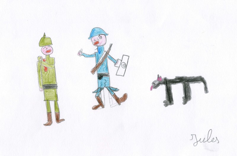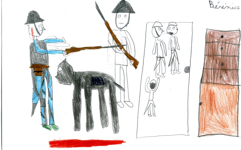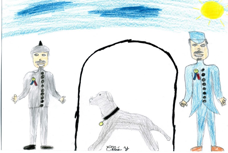 Soudain, un monsieur, un petit garçon et un singe dirent (sauf le singe bien sûr) le contraire car c’était le chef qui avait dit à ses soldats de couper l’oreille d’un Allemand. Puis les accusés enterrèrent le cuisiner.