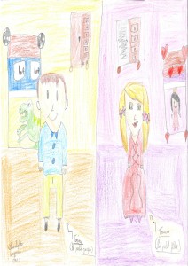 Je n’ai pas aimé car l’histoire est décevante: les personnages inventent des situations bizarres pour faire rire ou pleurer le frère et la sœur. Cela m’a déplu.