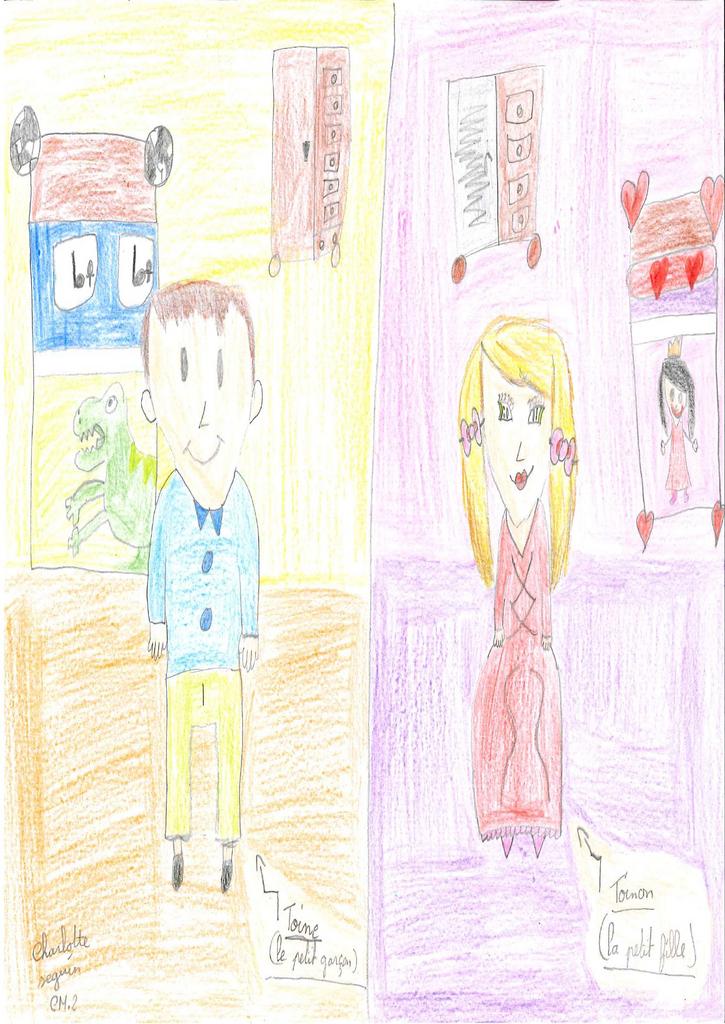 J’ai aimé ce livre. C’était rigolo, les images sont belles. La fin n’était pas très bien parce que c’était bizarre que tout le monde se déguise pour faire pleurer Toine et faire rire Toinon. J’ai bien aimé quand les voleurs poursuivaient Toine et Toinon.