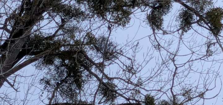 Pendant que nous allions au city stade pour la séance de sport, nous avons vu du gui dans un arbre chez le garagiste. C’était quand même assez loin et nous ne l’avons pas vu...