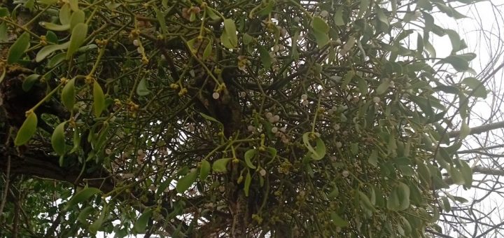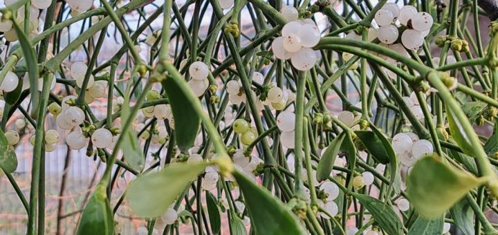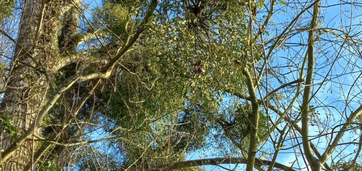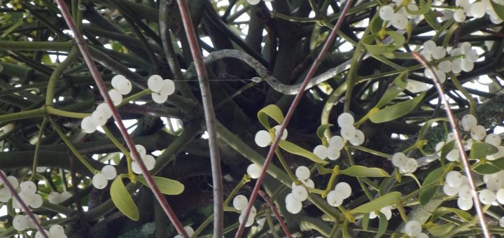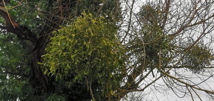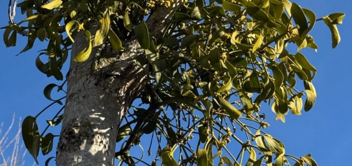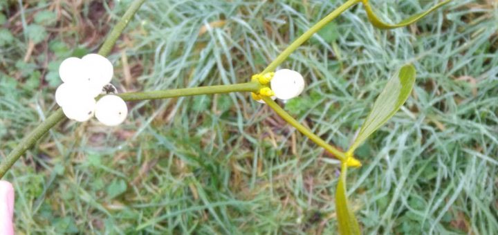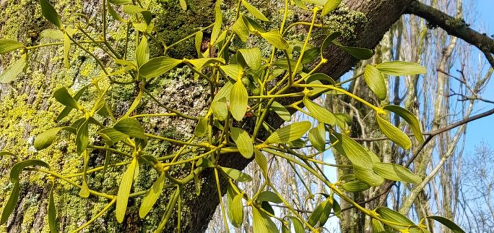 Nous avons aperçu les boules de gui au loin dans les arbres de la haie au-dessus de l’étang. En nous approchant, nous avons reconnu ses feuilles et sa forme. Au sol, nous avons même...