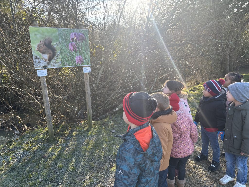 En chemin, nous croisons des panneaux présentant la faune (les animaux) et la flore (les végétaux) que nous pouvons trouver sur la commune de Mauprévoir. Nous sommes sur la bonne piste pour trouver un écureuil on dirait! Mais revenons à nos moutons, ou plutôt à nos cèdres…