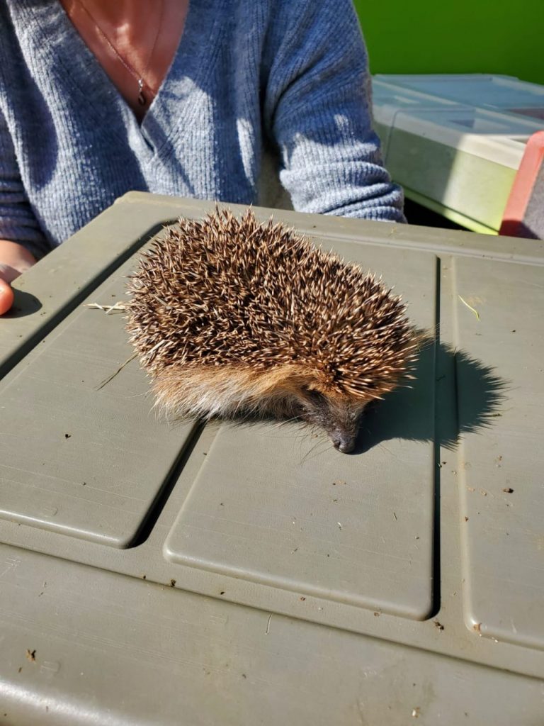 Nous avons trouvé que le hérisson n’était pas très gros. Nous l’avons regardé un peu puis on l’a laissé tranquille parce qu’il n’avait pas l’air très rassuré. En fin de journée, il était encore en train de se promener et de fouiller dans l’herbe.