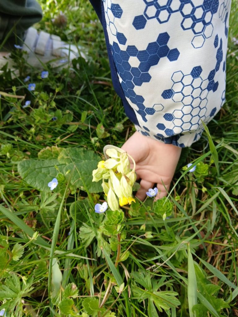 Mercredi 19 mars, on a trouvé des coucous dans le chemin du bois des lutins. Luca a mis sa main à côté de la tige pour mesurer. Vendredi, on a mesuré la main de Luca avec la règle pour voir la taille. Sa main mesure entre 10 et 11 cm, comme la tige.
