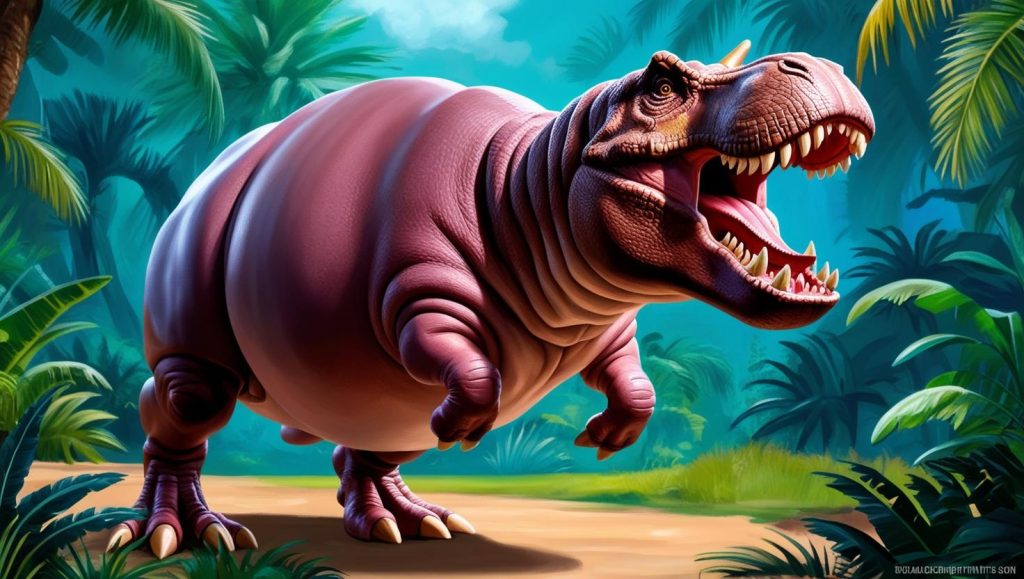 AUTRES INFORMATIONS : il vit dans la forêt, mais il ne sort que la nuit, il faut être attentif car il se cache dans les arbres malgré sa grande taille. Il est omnivore, ça veut dire qu’il mange de tout: des noisettes, des écureuils, des renards, des lapins, des oiseaux, des glands, des feuilles et des champignons. Le tyrapopotame pond des œufs (ils sont assez gros!) que le mâle couve pendant que la femelle chasse les écureuils.
