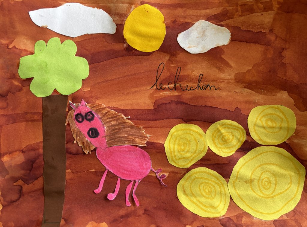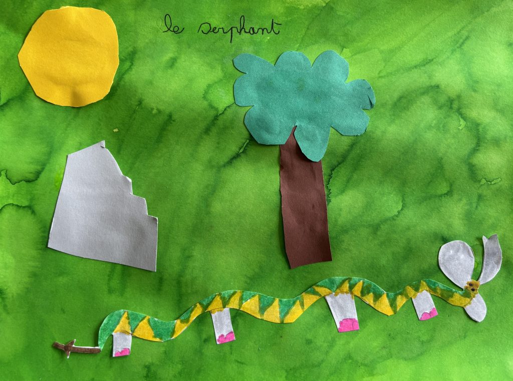 Et enfin, le dernier mais non le moindre, last but not least (puisque nous sommes en anglais renforcé cette année), voici le redoutable Serphant découvert par Liam. Lors d’une promenade en forêt, Liam a vu le Serphant qui buvait dans une rivière. Son corps, très long et fin, était comme décoré de triangles jaunes et verts. Liam a réussi à lui toucher une oreille, et ils sont devenus amis.