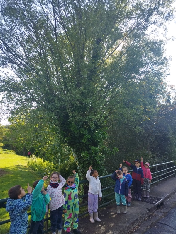 En classe dehors, les petits explorateurs ont trouvé 4 espèces différentes de saules : saule blanc, saule noir, saule à feuilles de pêcher et bien sûr, le plus facile à identifier et qu’ils connaissaient déjà, le saule pleureur !