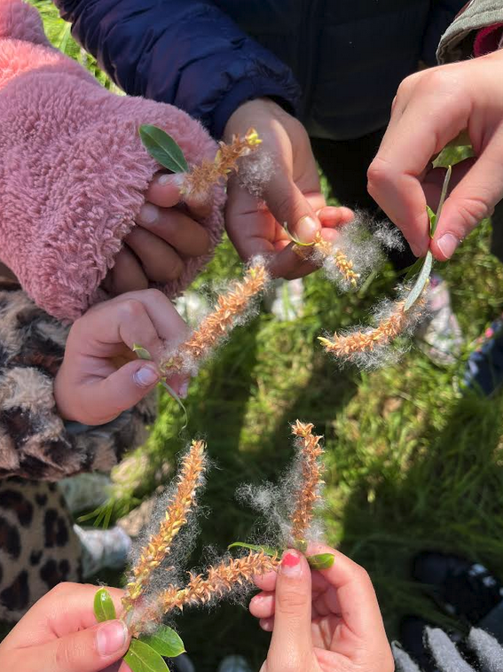 Le saule blanc que nous avons trouvĂ© mesure environ 20 m. Nous l’avons mesurĂ© grĂące Ă  notre croix du bĂ»cheron que nous avons fabriquĂ© avec les branches du saule. Ses feuilles Ă©taient blanches. Nous l’avons pris en photo entre l’école et le parc communal oĂč nous pratiquons l’école dehors. Ces deux saules Ă©taient couverts de chatons et nous pouvions voir voler les petits poils blancs qui s’en Ă©chappaient. On aurait dit un endroit féérique.