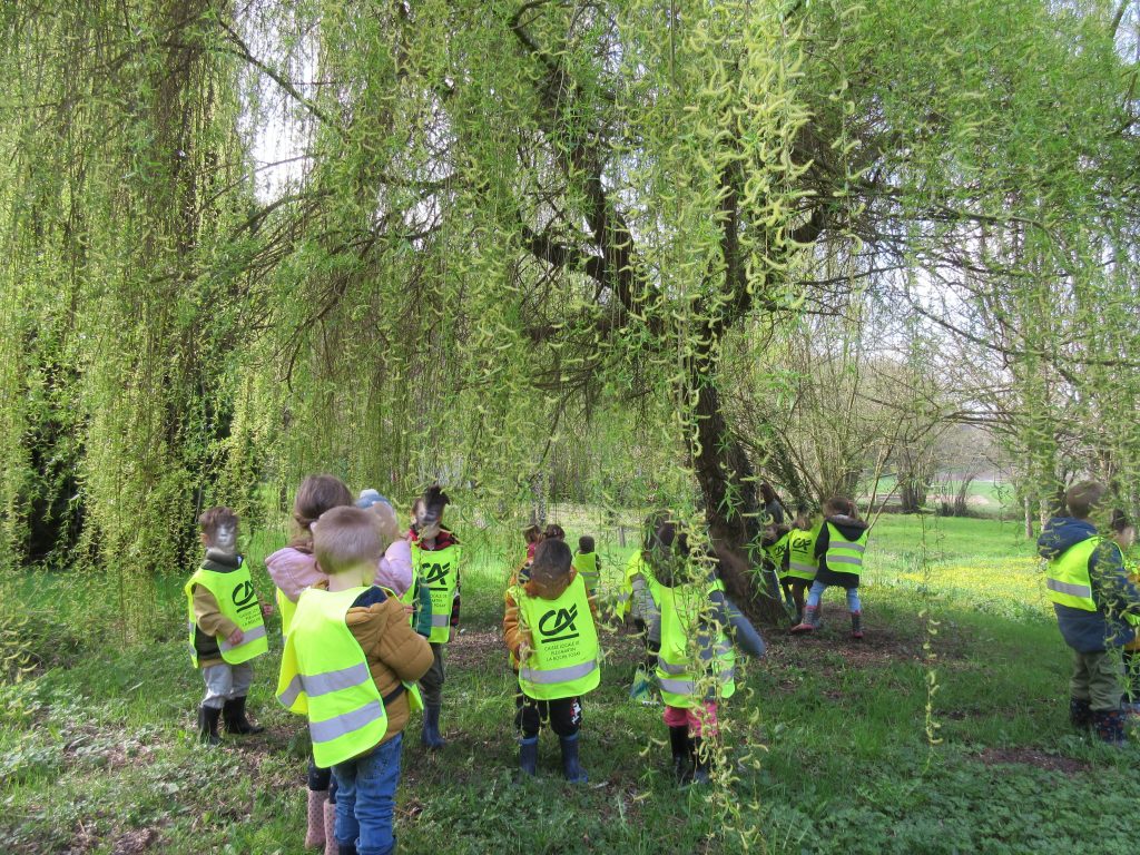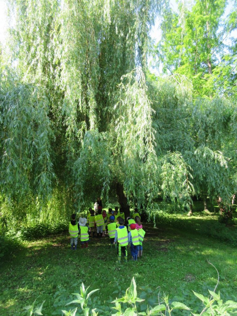 La recherche du saule était plutôt facile car c’est un arbre que nous avons l’habitude d’aller voir car nous aimons nous cacher sous ses branches. Nous étions allés le voir au début du printemps lorsque ses feuilles commençaient tout juste à pousser, nous avions observé et caressé ses fleurs.