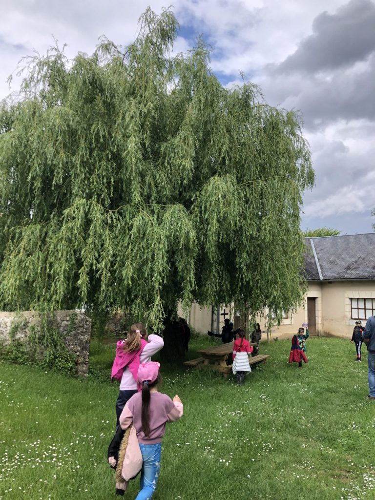 Nous avons trouvé un premier saule (pleureur) lors d’une sortie aux Roches Prémarie, au bord du ruisseau des Dames et des lavoirs du villages. Léo nous a envoyé une photographie d’un autre saule qui se trouve chez lui. Puis, nous avons fait une petite promenade dans le village de Payroux, en longeant le cours d’eau, pour essayer d’en trouver proches de l’école. Nous pensons avoir réussi!