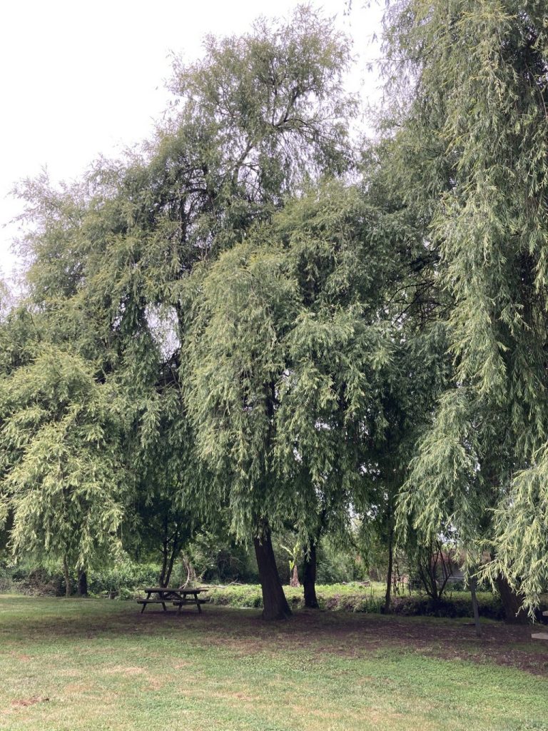 Nous avons marché 5,2 kms (aller-retour) pour aller au parc de Blaslay. C’était un peu long pour les PS donc ils sont restés à l’école avec le maître. Au parc, il y a un petit ruisseau et juste à côté plusieurs saules pleureurs.