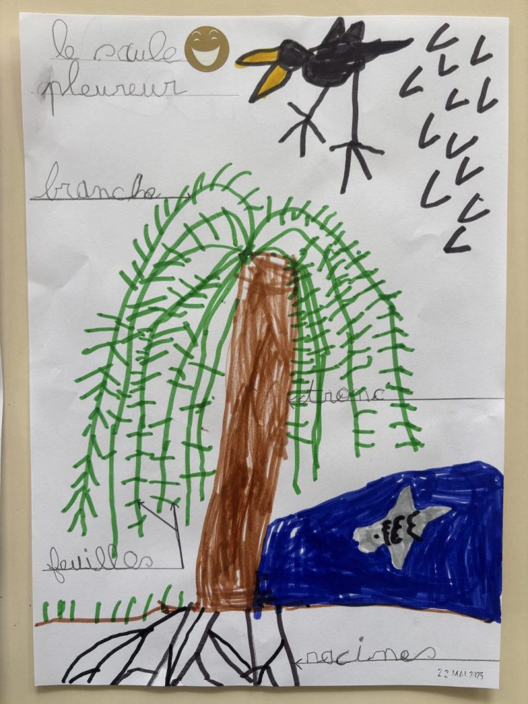 Récit tapé par les GS : On a été au bord de la rivière “Le Payroux”. On a vu beaucoup de saules pleureurs.