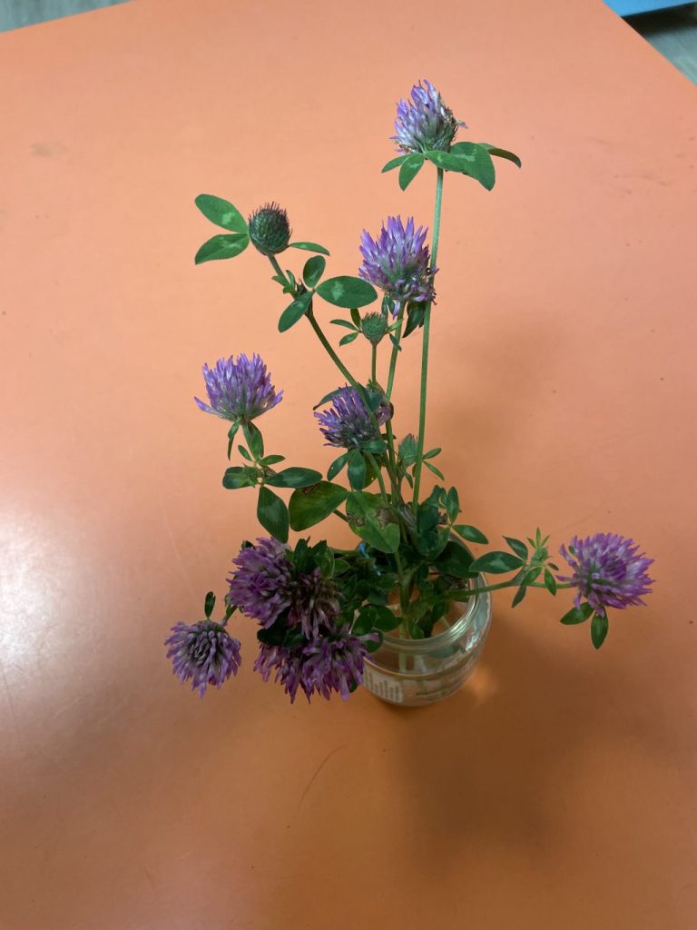 Nous avons beaucoup de trèfles dans la cour de l’école mais ce ne sont pas des trèfles des prés mais des trèfles blancs.