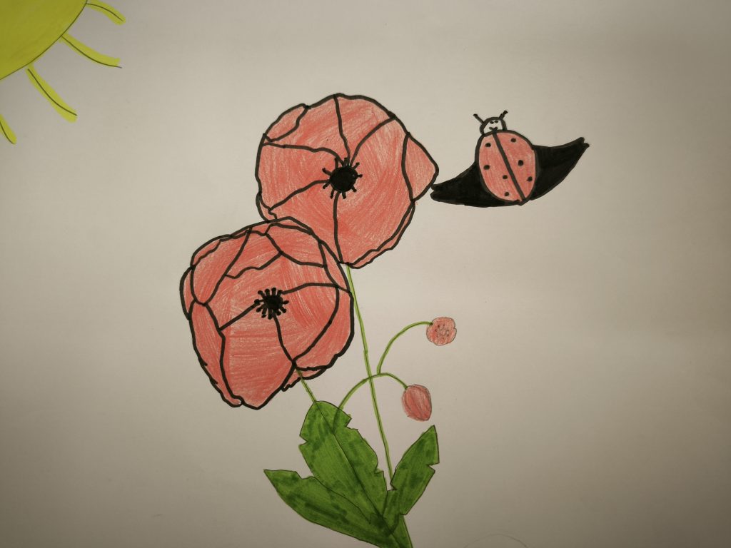Ce coquelicot on l’a trouvé dans le champs derrière l’école.