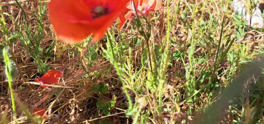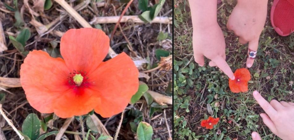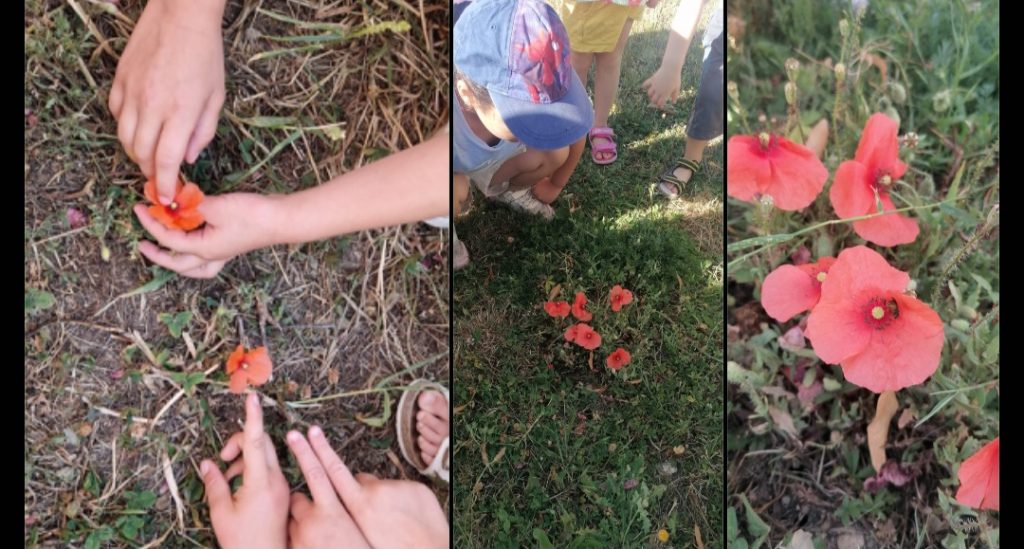En passant à côté de la salle Agora, on a aperçu des tâches rouges au loin dans le pré. C’étaient des coquelicots !