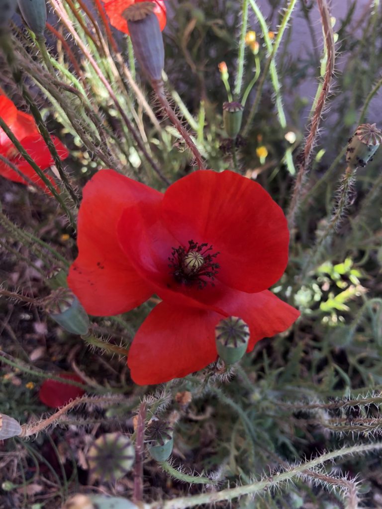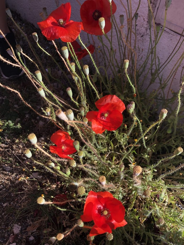 Devant chez la voisine, on a trouvé les coquelicots, au début de notre randonnée.