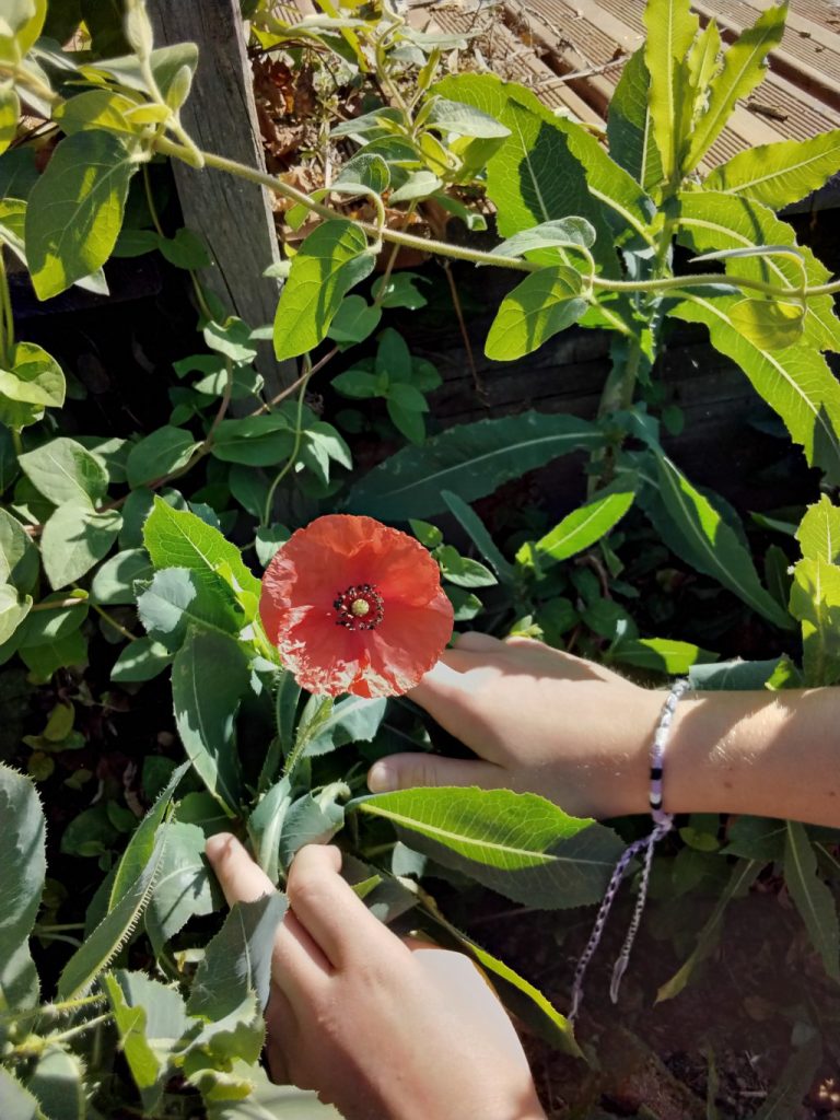 Nous étions dans le parc quand nous vu ce coquelicot, nous l’avons photographié et bien observé.