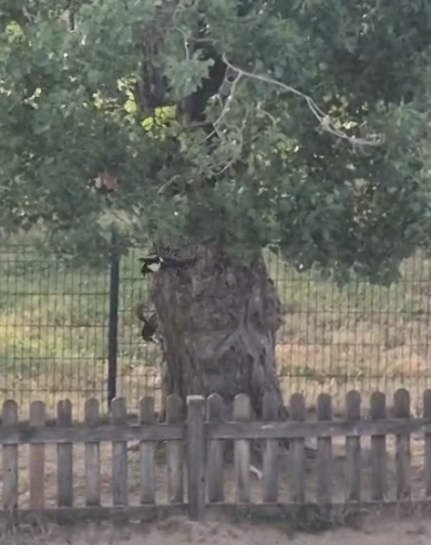 Après des jours de recherche sans succès nous étions sur le point d’abandonner…. quand vendredi matin, Cheyenne notre ATSEM a réussi à filmer une scène incroyable dans la cour de l’école avant notre arrivée ; des pies chassant de l’arbre où elles avaient construit leur nid, un…..ECUREUIL !