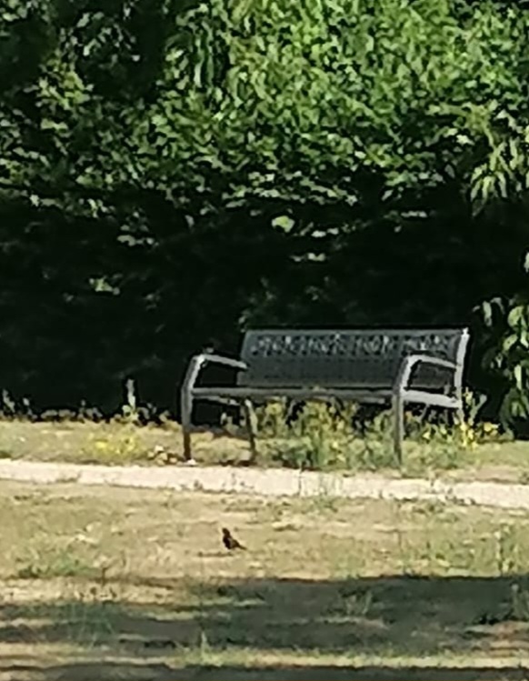 Nous avons vu un merle noir au loin près d’un banc du parc du château. Il s’est envolé quand nous sommes entrés dans le parc.