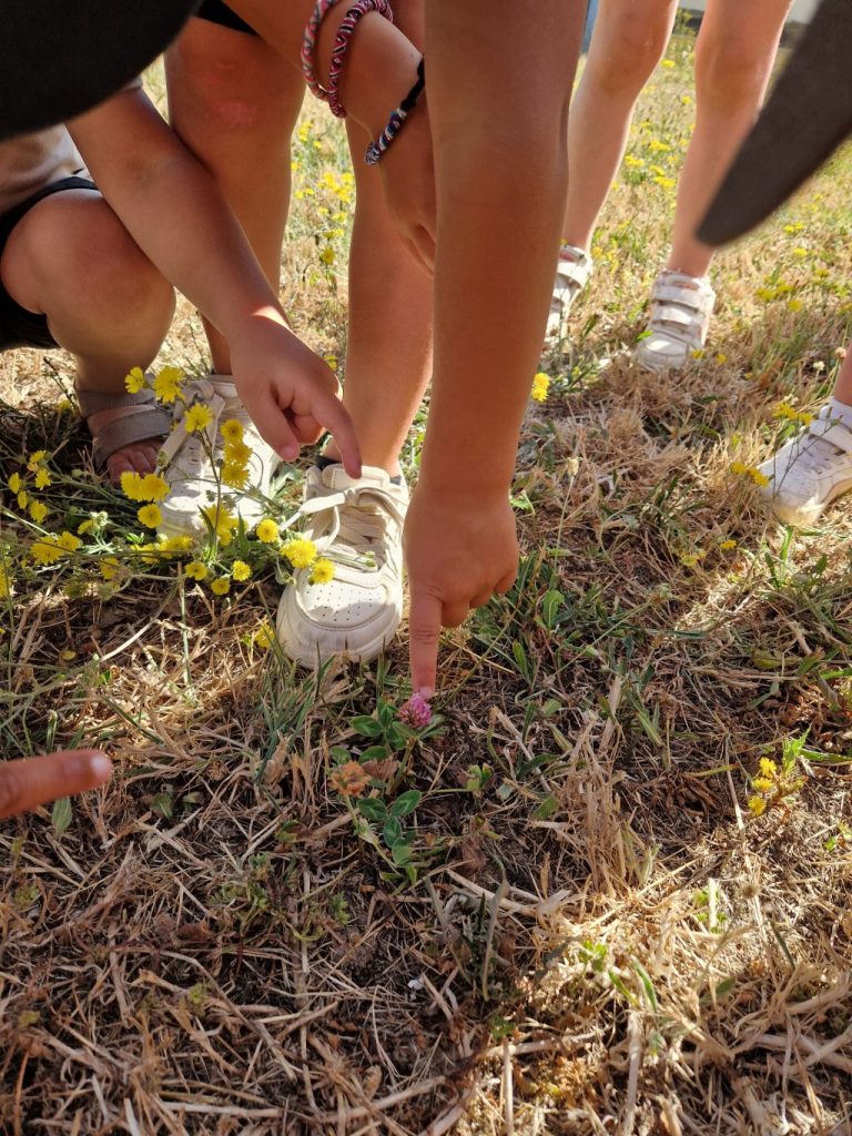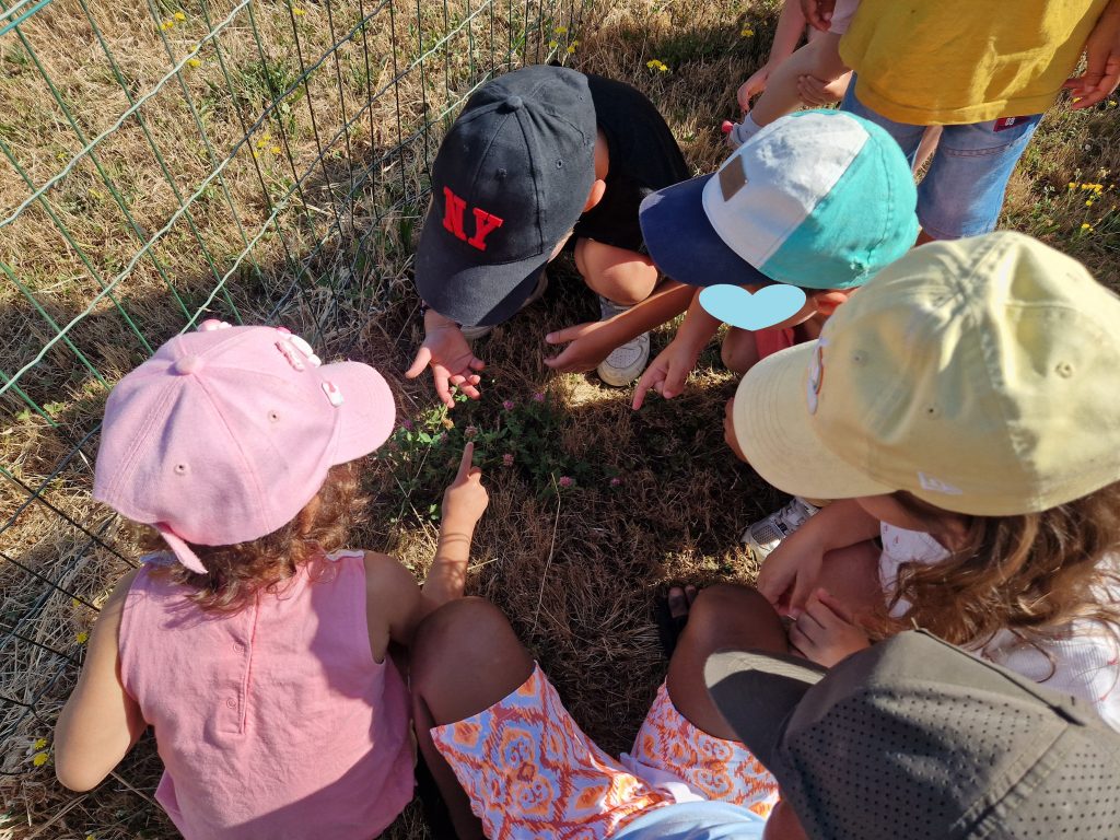 On a trouvé des trèfles des prés ! Ils sont petits, jusqu’à nos mollets. Ils ont des feuilles en 3 parties, ils ont du blanc et du violet sur la fleur. On les a trouvés dans la cour à côté de notre classe. Ce sont des fleurs mais elles n’ont pas de pétales !