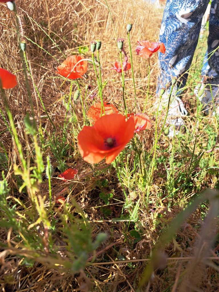 Elohime a vu des coquelicot sur le bord du chemin. Ils ont des grandes tiges.
