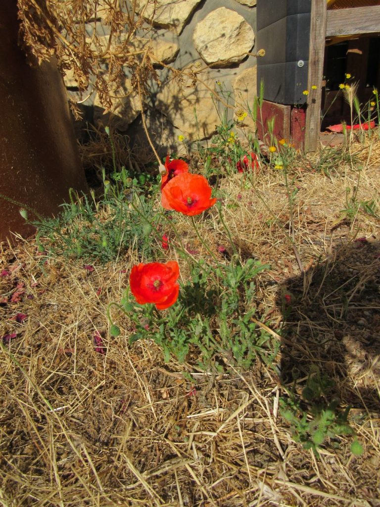 Les coquelicots poussent dans la cour, il était temps de les photographier, ils sont presque tous en graines maintenant, ils repousseront l’année prochaine.