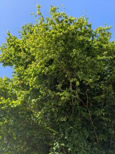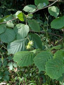 C’est un arbre avec des feuilles rondes et une petite pointe. Les fruits du noisetier sont des noisettes.