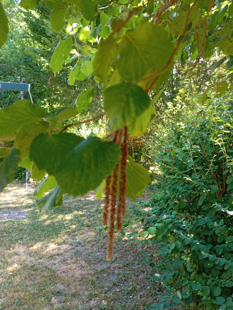 Le noisetier a plusieurs troncs, ça s’appelle une cépée. Nous avons aussi vu des noisetiers pourpres.