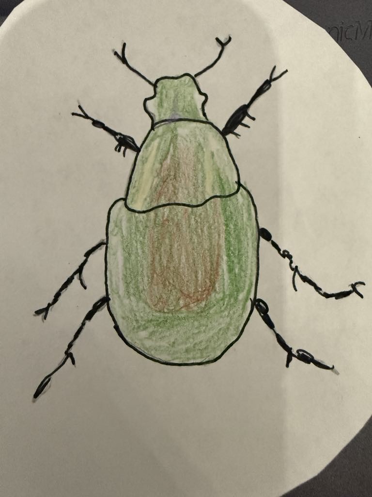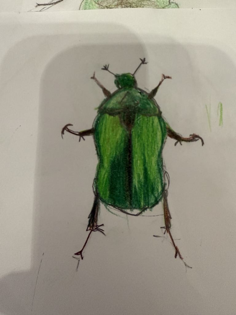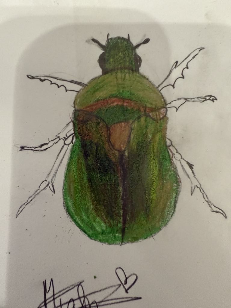 Cet insecte mesure entre 1,5 et 2 cm, nous ne l’avons pas trouvé, mais nous l’avons dessiné.