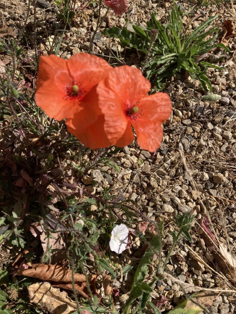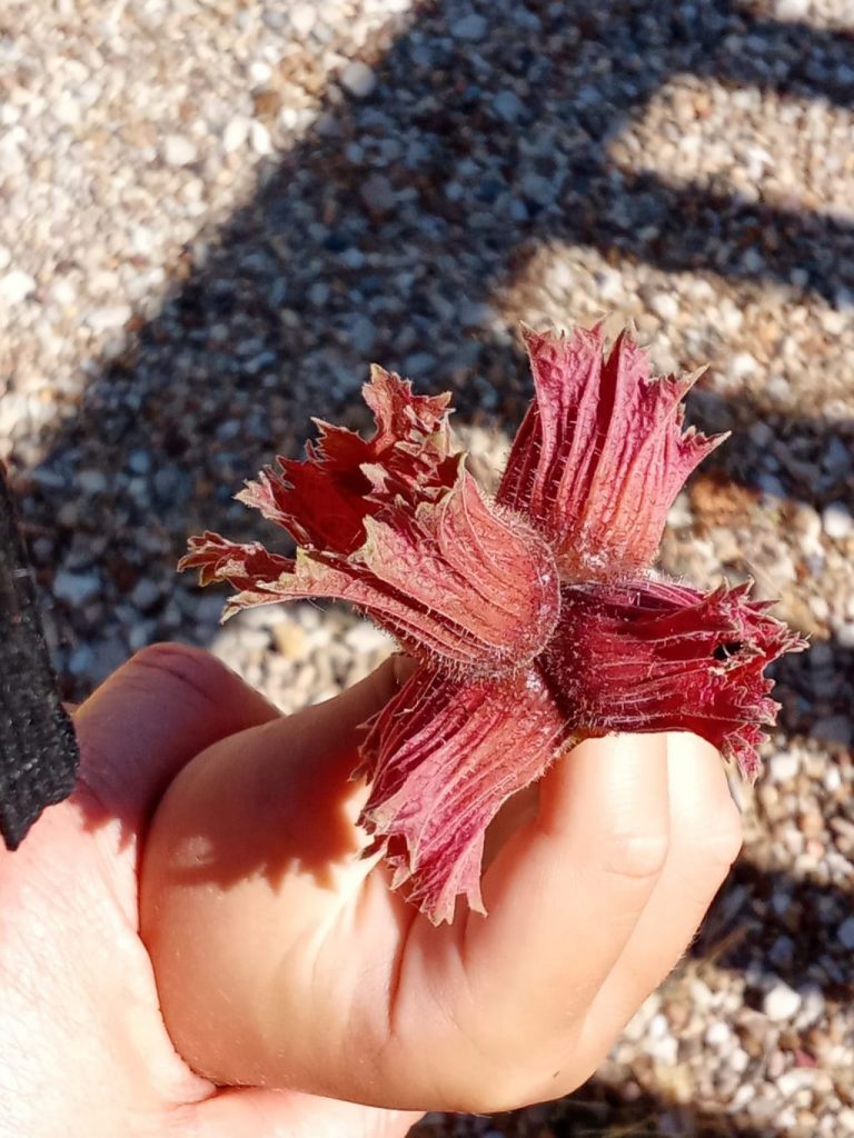 Nous avons vu un coquelicot rose aussi et un noisetier avec des noisettes rouges.