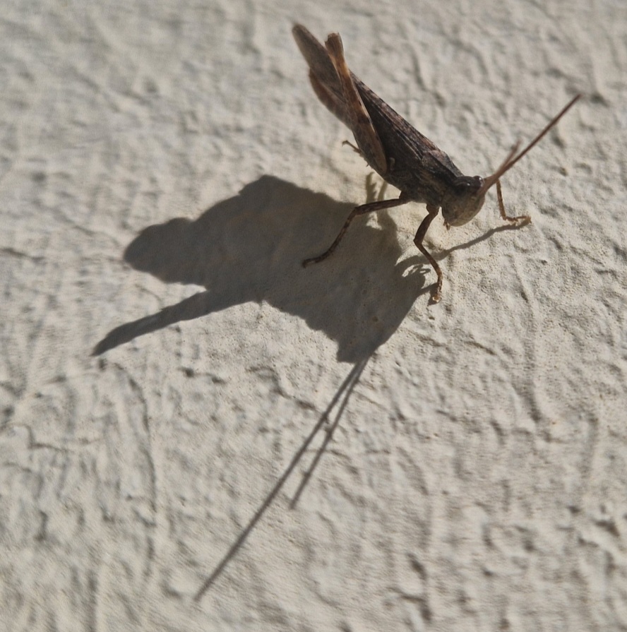 Sur un mur près du jardin de l’école, on a vu un criquet. On a bien vu aussi son ombre !