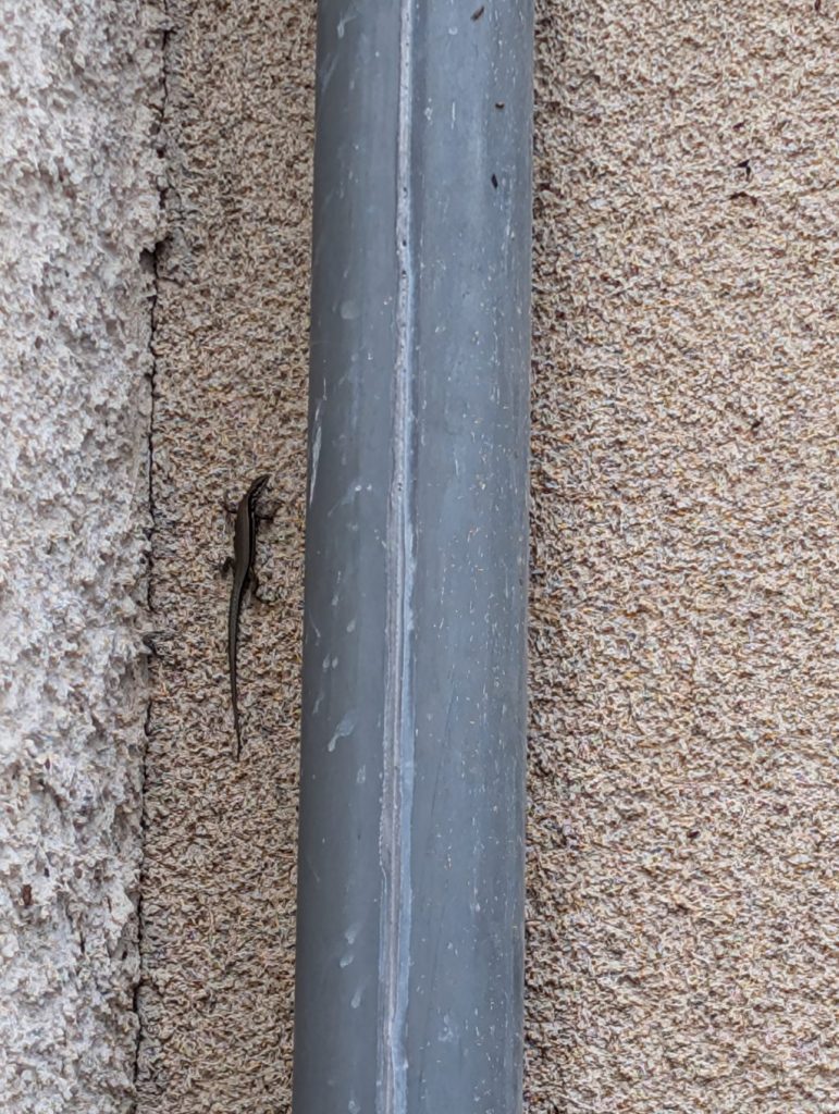Ce petit lézard a élu domicile sur le mur de notre classe où il a pu profiter de la chaleur du mur et du soleil !