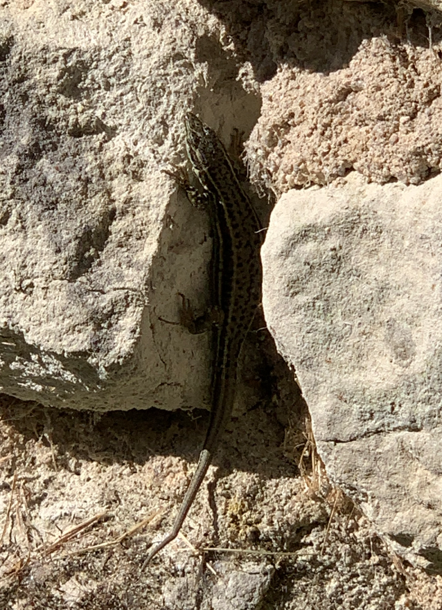 Le vendredi 19 septembre, nous avons vu trois lézards sur un mur en pierres, à côté de l’école et juste à côté de la maison d’Albin. Il faisait chaud et soleil.
