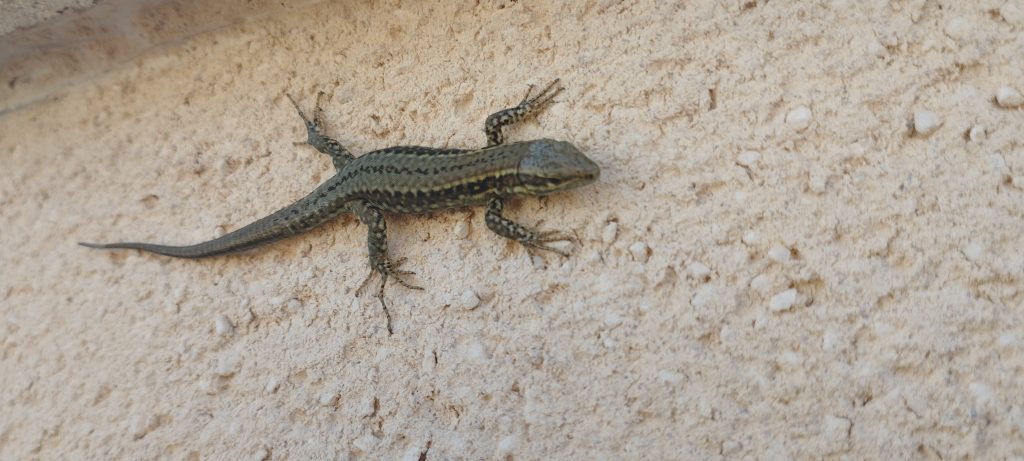 Par une belle et chaude journée, en allant vers le stade d’Avanton pour faire un peu de sport, nous avons découvert par surprise et sans même le chercher, ce petit lézard des murailles qui se réchauffait au soleil, sur le mur d’une maison.