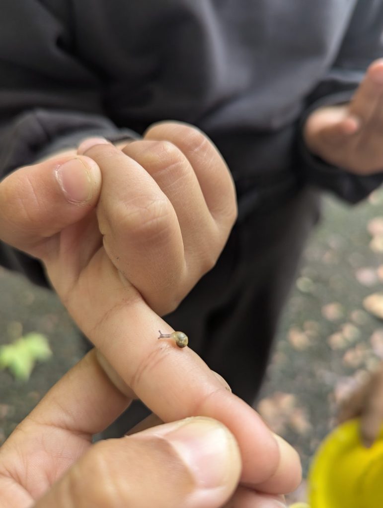 C’était pour le premier jour de l’automne. Et aussi pendant la récréation, Tasnime a trouvé un escargot avec son bébé !!!
