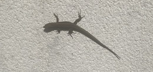 Il se balade tout près de nous, sur le petit muret à côté du portail. C’est un endroit qu’il affectionne car le soleil tape fort dessus. Comme il adore la chaleur, il peut rester bien immobile pour se réchauffer. Il lézarde au soleil !