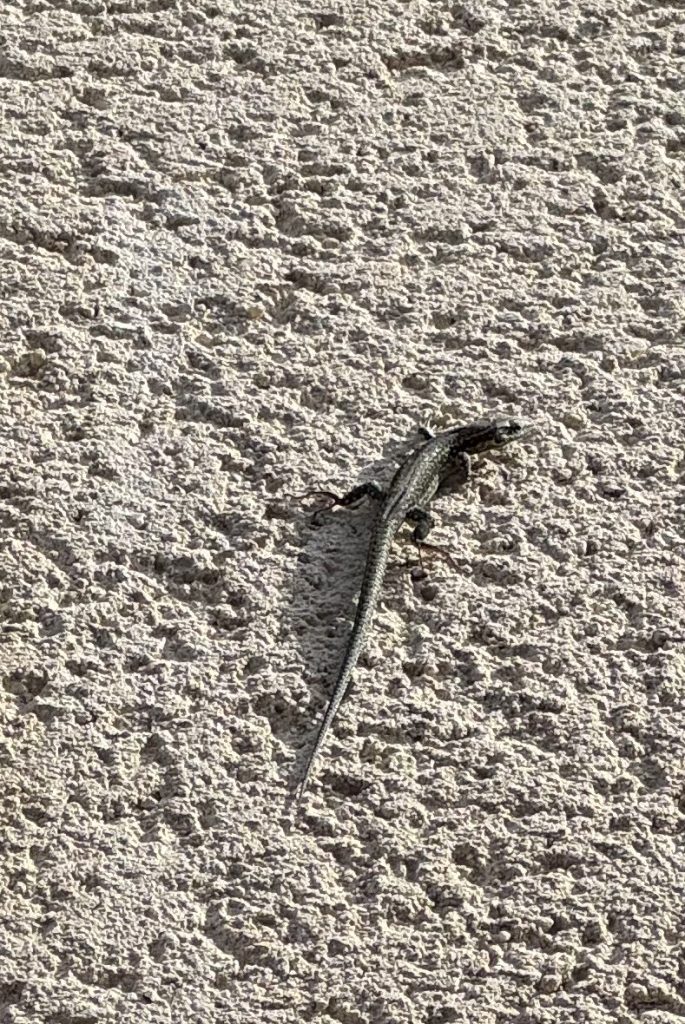 Nous avons trouvé notre lézard sur le mur de la mairie dans la cour de l’école. Il se prélassait au soleil.